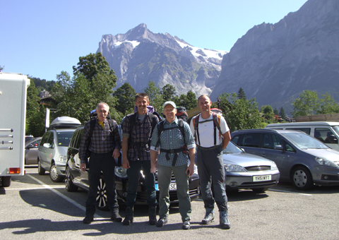 Django, Anton, Erwin, Martin am Parkplatz. Die Karte zum Jungfraujoch.